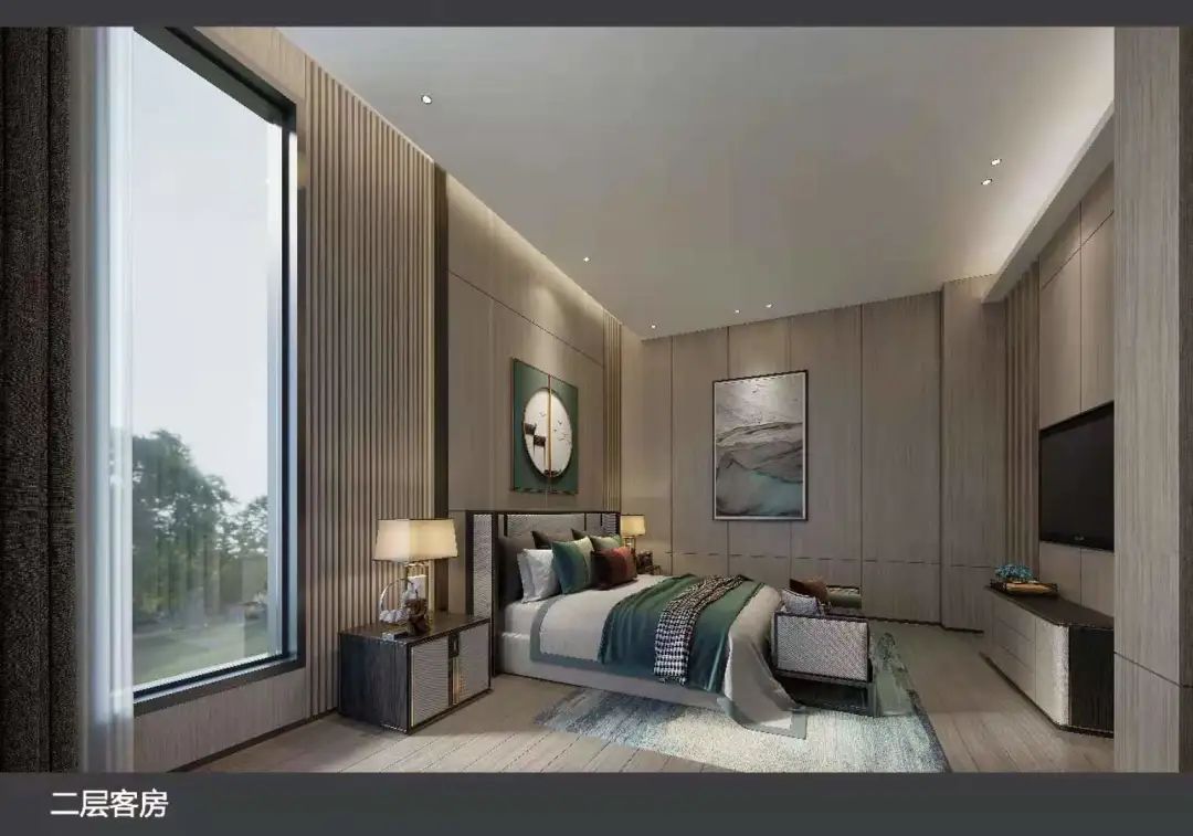 簡約木質(zhì)墻面和地板為整體基調(diào),柔軟的床榻,溫和的毛絨地毯,通透明亮的落地窗,無一不體現(xiàn)講究是中國人的待客之道,近可據(jù)席酣睡,遠可靜謐自然,有朋自遠方來,不亦樂乎。